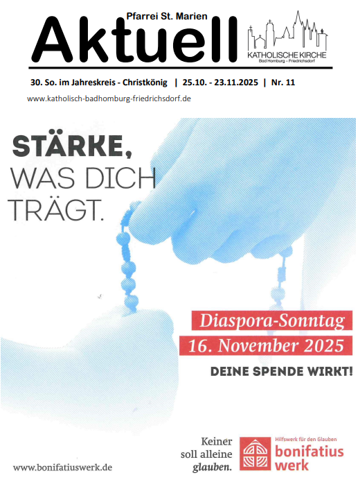 Pfarrbrief "Aktuell 11/2025" // Gottesdienstordnung + Vermeldungen + Kontaktdaten // 25.10. - 23.11.2025