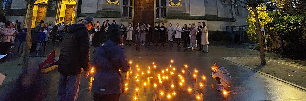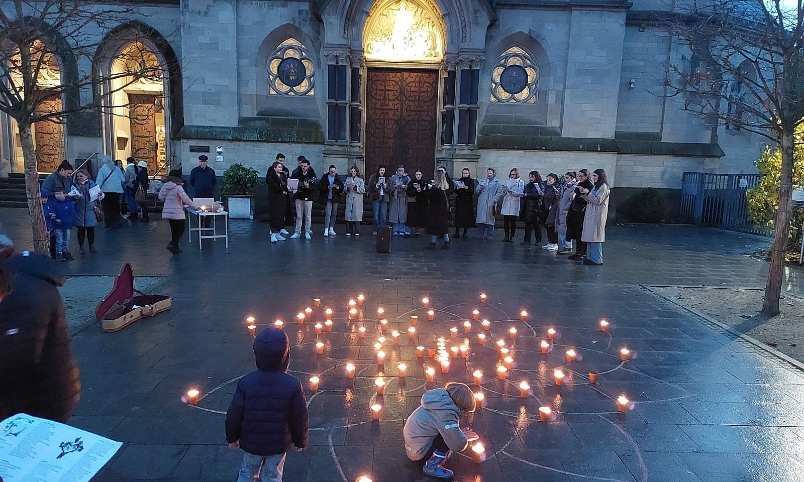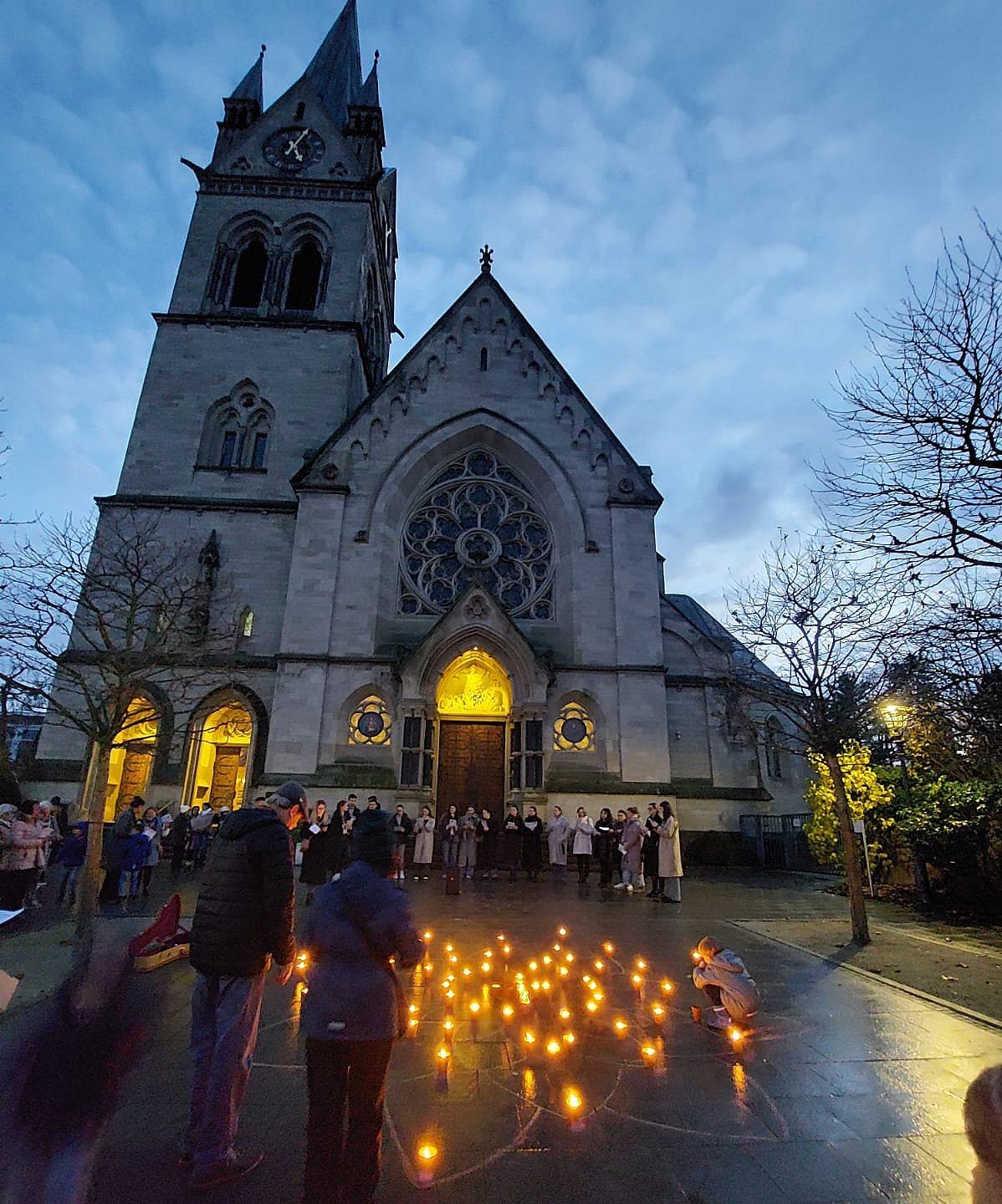 Viele Lichter erhellten den Kirchplatz St. Marien am Abend des 15.11.2025 zur „1 Million Sterne Aktion“ von Caritas International.