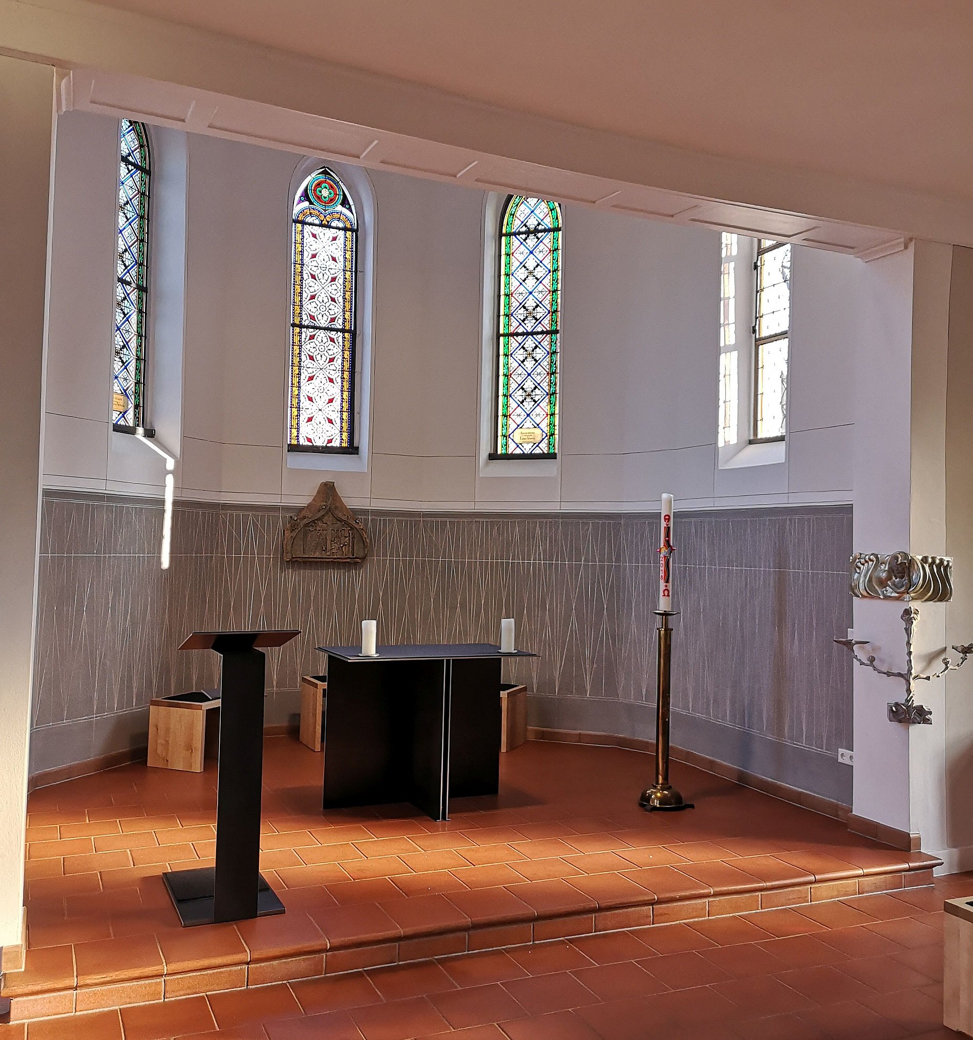 Der Gottesdienst am Tag des Friedhofs wurde in der hellen Friedhofskapelle vor dem eindrucksvollen Kreuz (Leihgabe der Maria Ward Schwestern) in dem 90er Jahren angebauten Chorabschluss gefeiert.